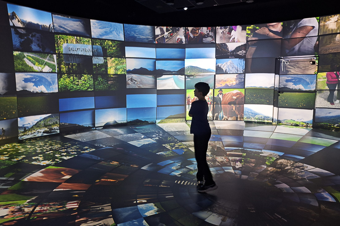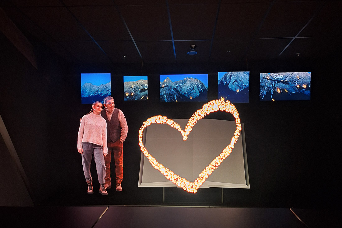 Wir lernen die vielfältigen Traditionen des Landes kennen und bekommen sogar einen Eindruck über bekannte Künstler:innen und Kunstwerke Tirols. Wir fliegen mit unseren VR-Brillen einmal über Innsbruck, erleben die mittelalterliche Altstadt bei einer Kutschenfahrt und sind bei der Bergisel-Schlacht um Andreas Hofer hautnah mit dabei. Die Technik ist hier übrigens wirklich ausgereift (das ist ja leider nicht immer so bei solchen immersiven Erlebnissen). Im letzten Raum wird es auch emotional: direkt, nachdem wir in einer 360°-Projektion zu den schönsten Naturschätzen Tirols mitgenommen werden, wird das wichtige Thema Umweltzerstörung/Versiegelung angesprochen.