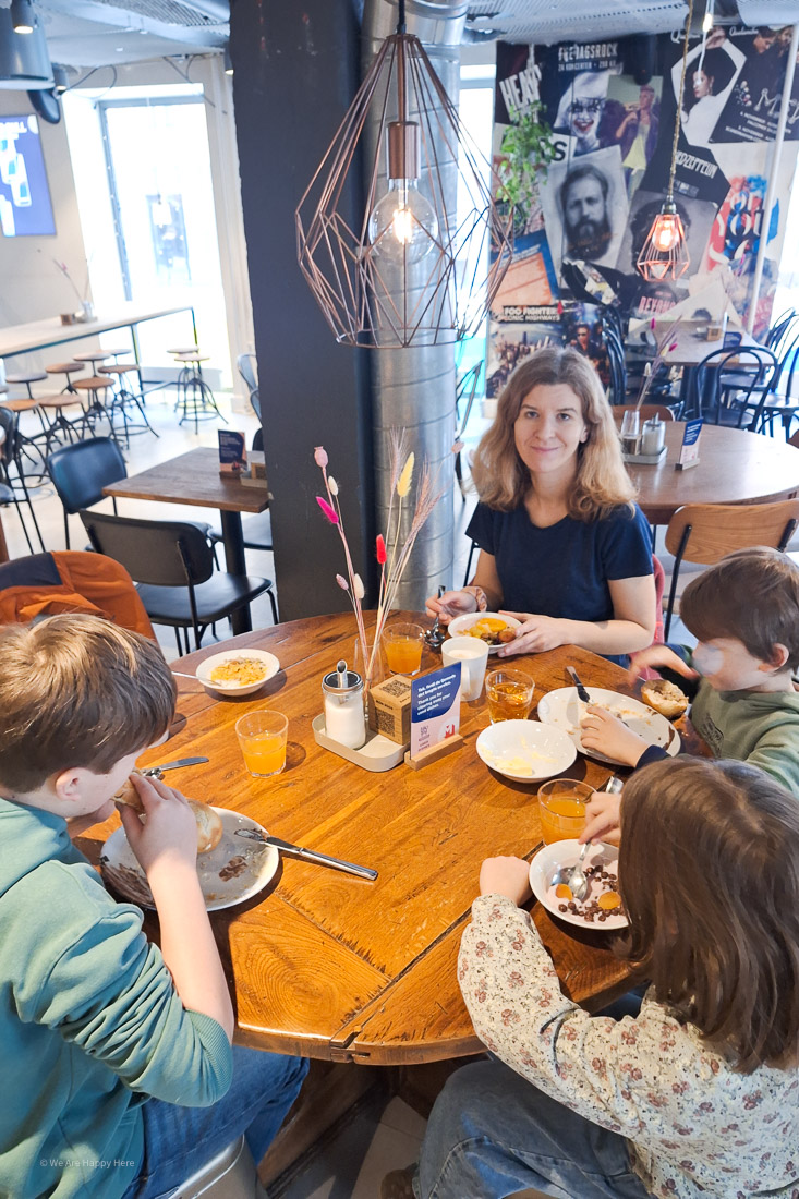 Wir haben jetzt schon in mehreren europäischen Städten ein MEININGER Hotel gewählt, so auch wieder für unsere Reise nach Kopenhagen mit Kindern: das MEININGER Hotel Copenhagen. Alle MEININGER Hotels sind sehr familienfreundlich und budgetfreundlich und haben eine gute, zentrale Lage. Außerdem überzeugen sie durch ein schönes, modernes Design mit vielen Details und eine einladende Atmosphäre. Wenn ihr mit Kindern reist und direkt über die Homepage bucht, gibt es automatisch einen Familien-Rabatt auf die Zimmerbuchung. Noch ein Bonus: Kinder unter sechs Jahren frühstücken kostenlos. Für einen sehr guten Preis gibt es ein reichhaltiges Frühstücksbuffet, das wir dazugebucht hatten.