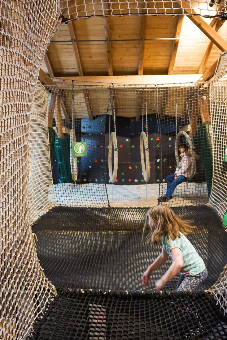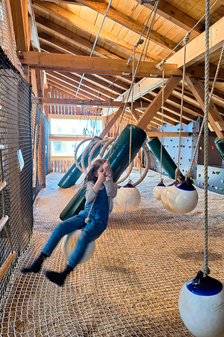 Was ist der Erlebnis-Spielstadel? Eine große alte Scheune wurde zum naturnahen Indoor-Kinderparadies umgewandelt. Mit Kletter-, Hüpf-, Schaukel- und Seilelementen wurde eine ganz eigene Welt geschaffen, die wir so noch nicht erlebt haben – sogar mit echtem Heu unter den Füßen. Ziemlich, ziemlich cool! Sogar einen Ort zum Sterneschauen gibt es, den Sternsch(n)uppen – jederzeit mit Schlüssel von der Rezeption. Doch ich merke, Worte wollen dem Spielstadel nicht so ganz gerecht werden. Fotos vielleicht ein wenig mehr: