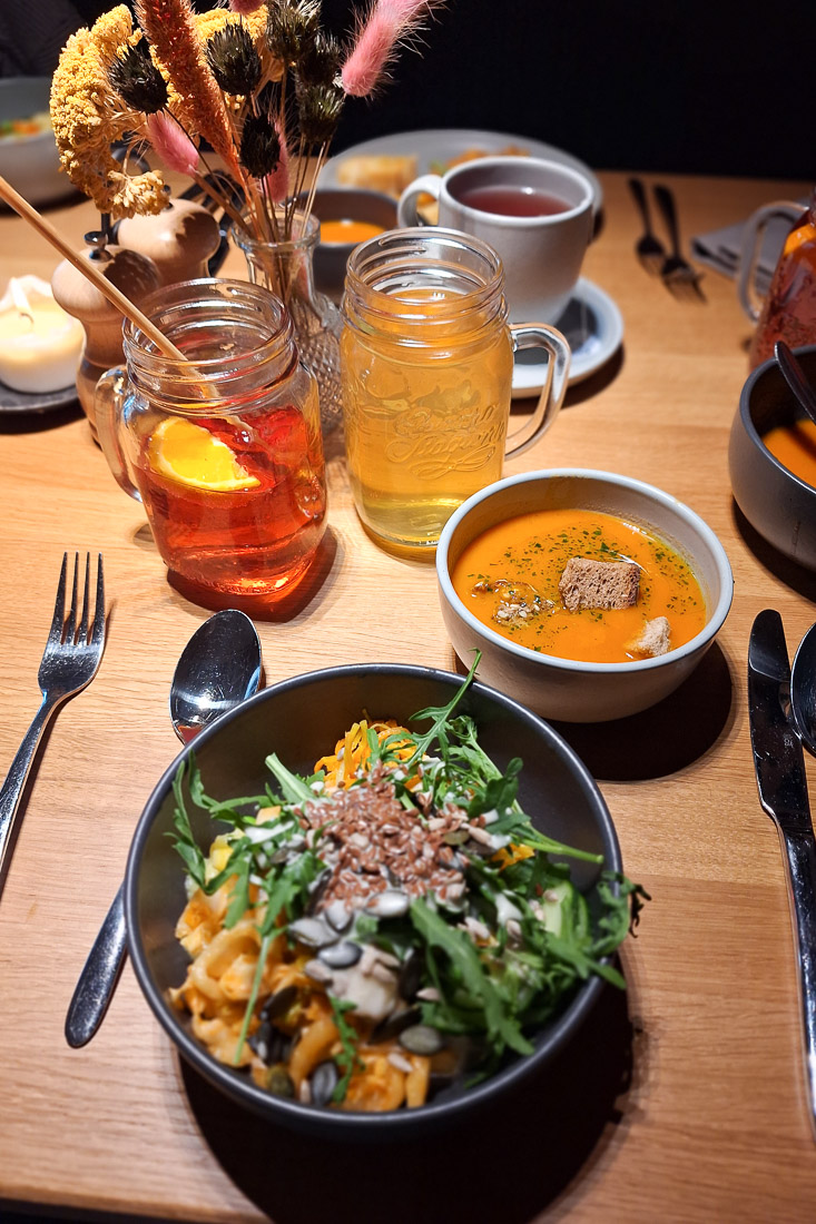 Vorfreude kam bei mir jeden Tag auf, wenn es auf’s Abendessen zuging. Gerade als Vegetarierin habe ich mich dort besonders gut aufgehoben gefühlt. Täglich wird ein “eardiges”, vegetarisches Menü gekocht, auch die Suppen und Vorspeisen sind allesamt vegetarisch. Wer auf Fleisch nicht verzichten möchte, kommt dennoch nicht zu kurz: es gibt auch immer ein Menü mit Fleisch. Das Hotel Stern achtet dabei auf volle Regionalität, Saisonalität und ganze Verwertung. So heißt auch ihr Wirtshaus “Mit Butz und Stingl”, denn vom Butz bis zum Stingl wird eben möglichst alles verarbeitet.