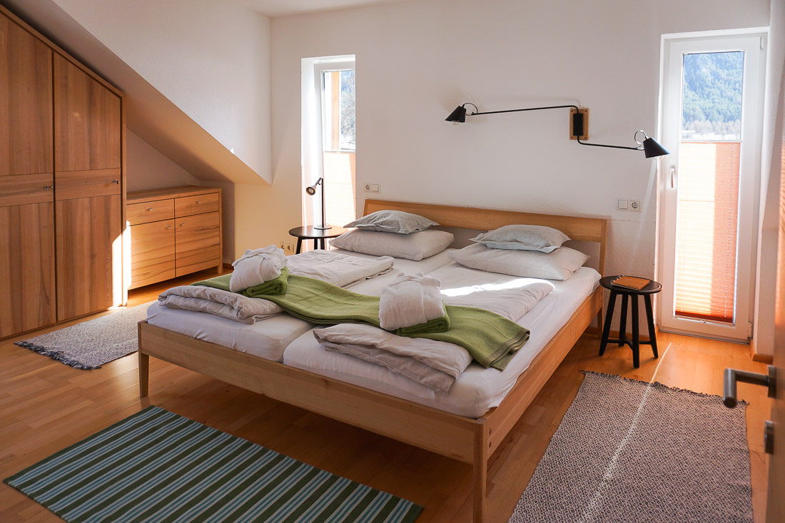 Wir sind mit dem Zug von Wien zum Hotel Stern gefahren. Von Haustür zu Hoteltür waren es (inkl. kostenlosem Shuttle vom Bahnhof zum Hotel) nur etwas über fünf Stunden Fahrtzeit. Wir hatten dabei eine sehr entspannte Zugfahrt, konnten die Zeit zum Kartenspielen und Lesen nutzen. Mit dem Auto hätte die Anreise mindestens genauso lange gedauert – die reine Fahrtzeit, ohne Pausen. Keine Ahnung, wie viele Pausen wir zusätzlich gebraucht hätten: Pinkelpausen, Essenspausen, kurz mal die Beine vertreten. All das geschieht im Zug nebenbei, der Zug fährt einfach weiter. Das liebe ich so am Bahnfahren. Eine etwaige Zug-Verspätung ziehe ich einem Im-Stau-Stecken allemal vor. Verspätung hatten wir aber keine…