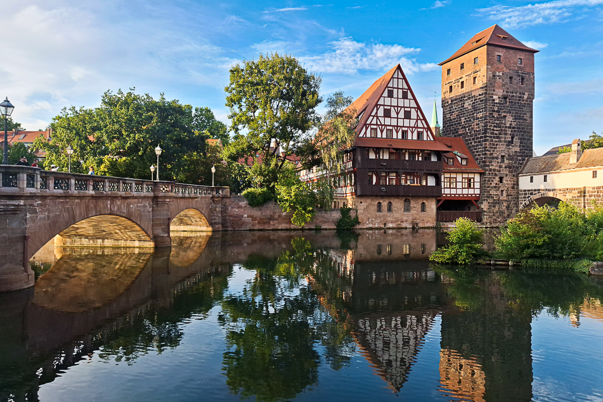 Anschließend geht es weiter zum Kettensteg, zur Maxbrücke und zum Henkersteg. Das rauschende Wasser der Pegnitzwehr gefällt auch Kindern und es gibt am Ufer der Pegnitz generell viel zu entdecken. Lasst euch in den süßen kleinen Gassen rund um die Trödelmarktinsel treiben und entdeckt Lebkuchen-Läden und Spielzeug-Geschäfte: