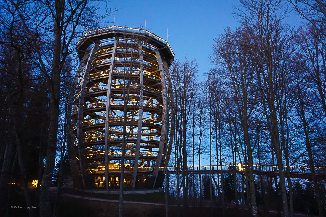 Vom Baumwipfelpfad am Grünberg haben wir uns gar nicht soo viel erwartet, wir waren dann aber alle sehr begeistert. Unser Großer hatte richtig Spaß, was aufgrund der vielen Erlebnis-Stationen für Kinder auch kein Wunder ist. Man geht zuerst eine zeitlang auf Holzstegen über den Baumwipfeln, bis man zum Abschluss die hohe Turmkonstruktion besteigt, was aufgrund der sehr sanften Steigung nicht im Geringsten anstrengend ist.