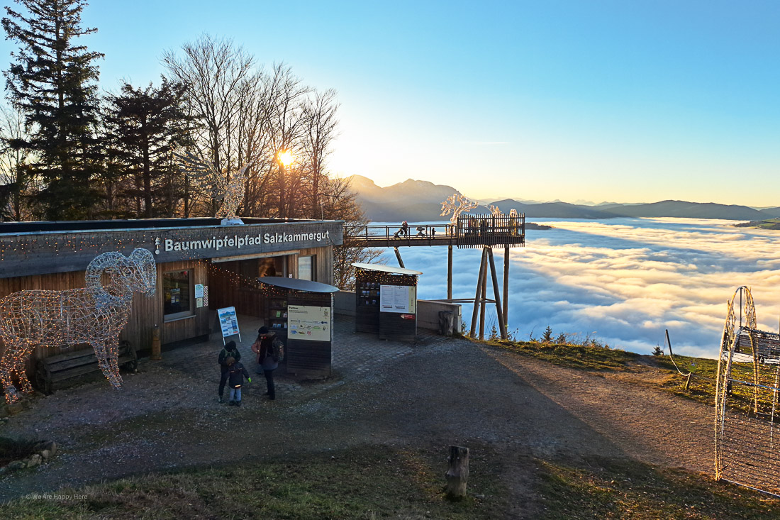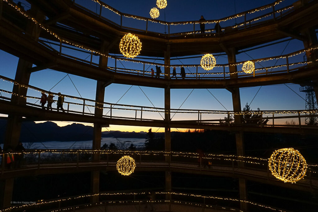 Im Dezember 2025 waren wir erneut am Grünberg, diesmal beim Lichterzauber am Baumwipfelpfad Salzkammergut. Und wir waren absolut begeistert! Nicht nur vom magisch beleuchteten Lichterpfad, sondern auch von der Sonnenuntergangs-Stimmung über dem Salzkammergut.