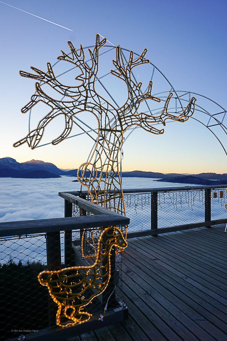 Am stimmungsvoll beleuchteten Baumwipfelpfad Salzkammergut geht es entlang der Baumkronen an zauberhaften Licht-Figuren in Form von Alpentieren vorbei. Bis der Weg schließlich in den Aussichtsturm mündet, der ebenfalls festlich beleuchtet ist. Hier kann man sich auch bei einem Punsch aufwärmen. Ein magisches Winter-Erlebnis für die ganze Familie!